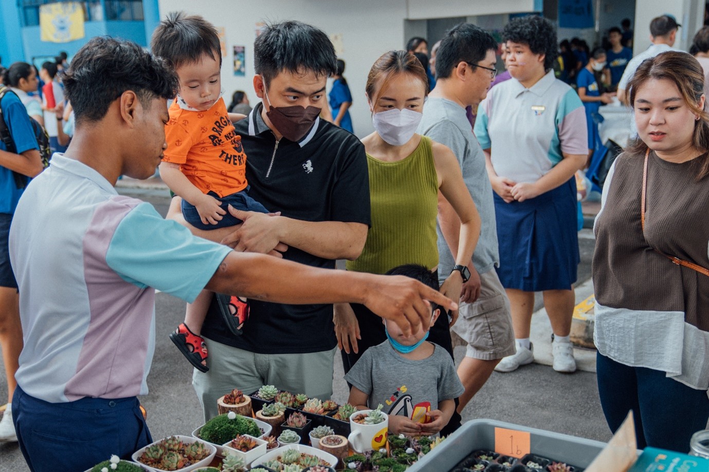On 29 April, we set up a booth with our friends from Grace Orchard School at Fairfield Methodist School’s Make Me a Blessing carnival. We aimed to promote an awareness of people with special needs and raise funds. At the booth, we sold terrariums and taught visitors how to make terrariums.